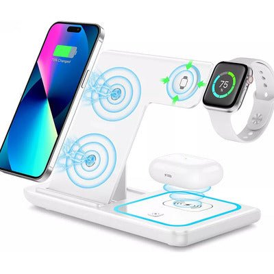 Base Turbo Carregador 3 em 1: Celular, Smartwarch e Fones Bluetooth