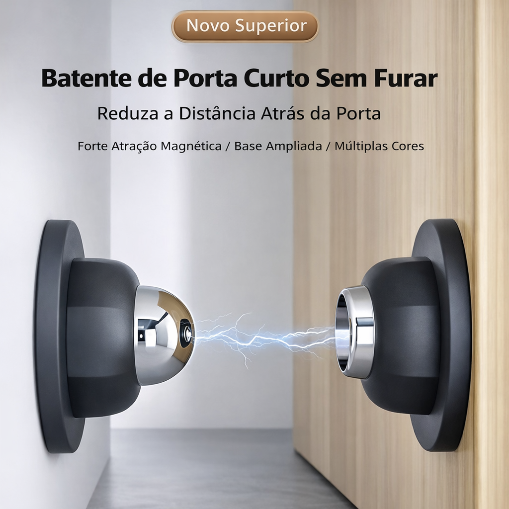 Trava Magnética de Porta Sem Furo – Limitador de Porta Forte, Silencioso e Design Moderno